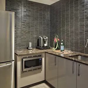 This Chicago hotel features Starbucks restaurant. There is also a restaurant with different American dishes in the area.